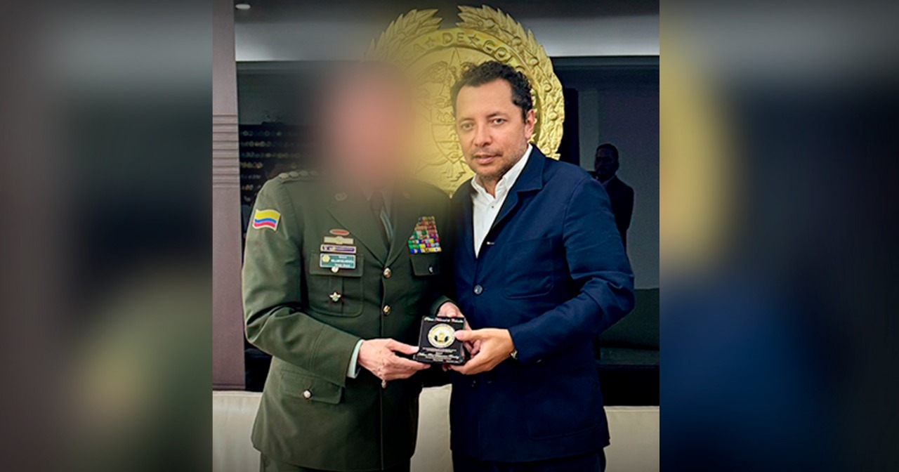 Randall Chuken con un representante de la Policía Nacional de Colombia. Tomado de sus redes sociales.