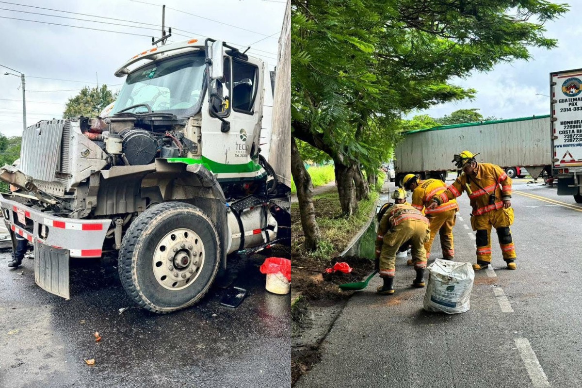De acuerdo con las autoridades, el accidente ocurrió a 100 metros al norte de la Estación de Bomberos de El Roble, y como consecuencia del percance, aproximadamente 100 litros de diésel se derramaron sobre la vía principal.