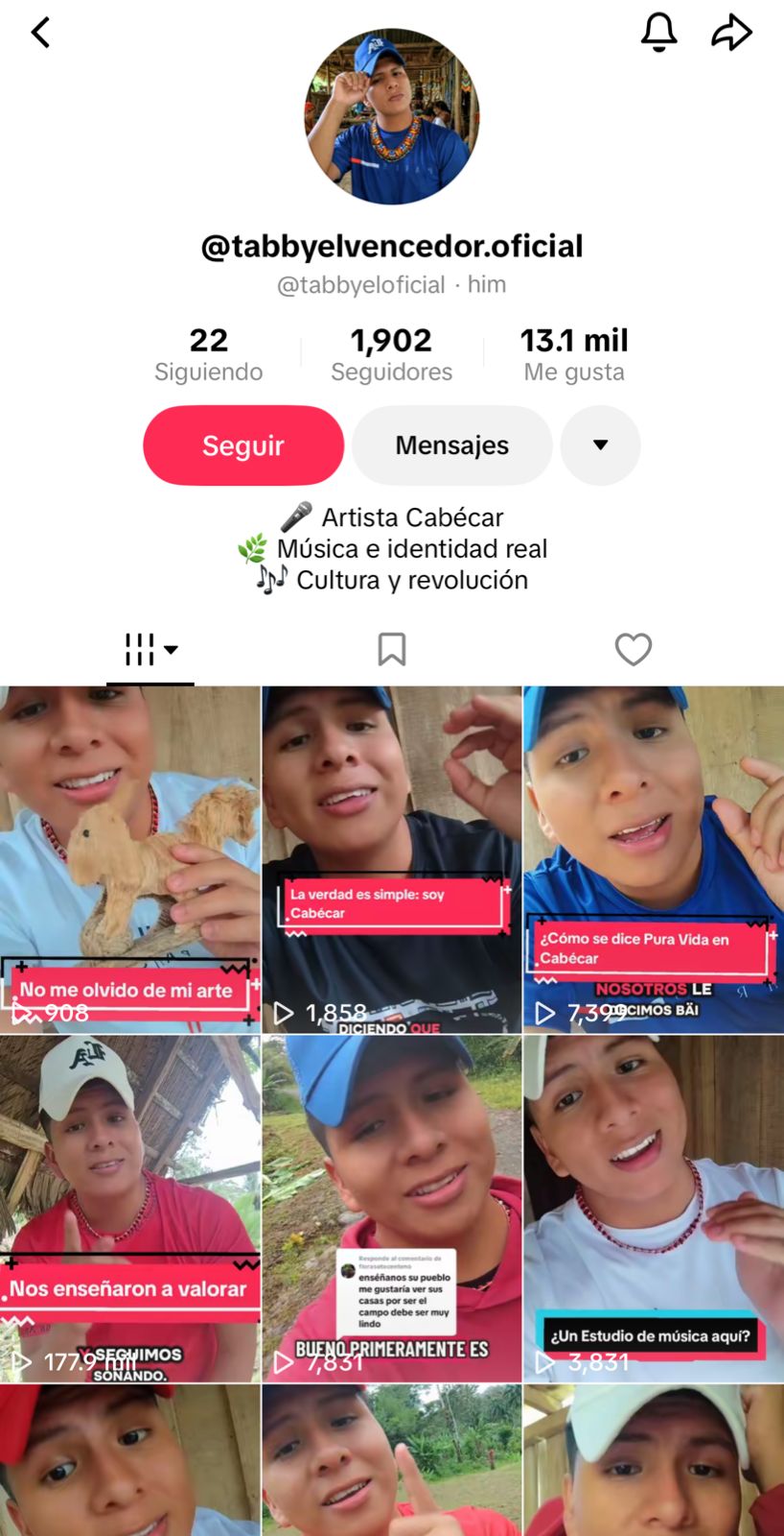 Sin embargo, compartir la cultura de su comunidad no ha sido suficiente para Aguilar. Desde niño tuvo clara su pasión por la música. En la misma plataforma también da a conocer las canciones que compone e interpreta.