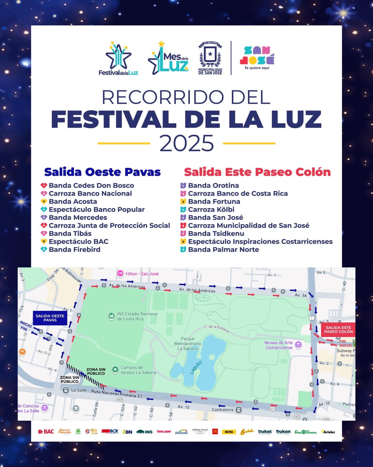 El Festival de la Luz se realizará este 13 de diciembre, a las 6:00 p. m. Las salidas designadas por la municipalidad son las siguientes: