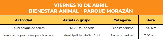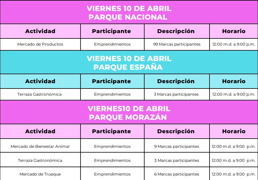 Desde las 11:00 a. m. y hasta las 9:00 p. m., los asistentes tendrán la oportunidad de disfrutar de actividades que se desarrollarán en distintos espacios como la Plaza de la Democracia, el nuevo bulevar de la avenida Central, el Parque Nacional, el Parque España, el Parque Morazán y el Paseo de las Damas.