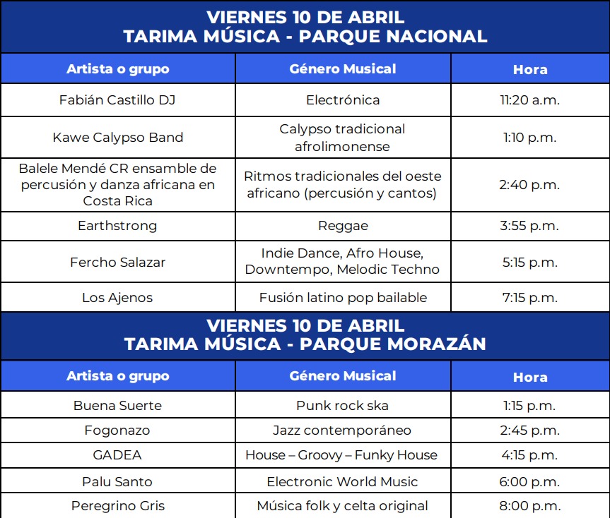 Desde temprano, la música será protagonista en el Parque Nacional y el Parque Morazán, con interpretaciones de DJs que llegarán a ambientar a los visitantes. Conforme avance la tarde, se sumarán distintos ritmos como reggae, afro house e incluso jazz, que tomará uno de los espacios. Para el cierre de la jornada, la agrupación costarricense Los Ajenos pondrá el broche final a este primer día de Transitarte.
