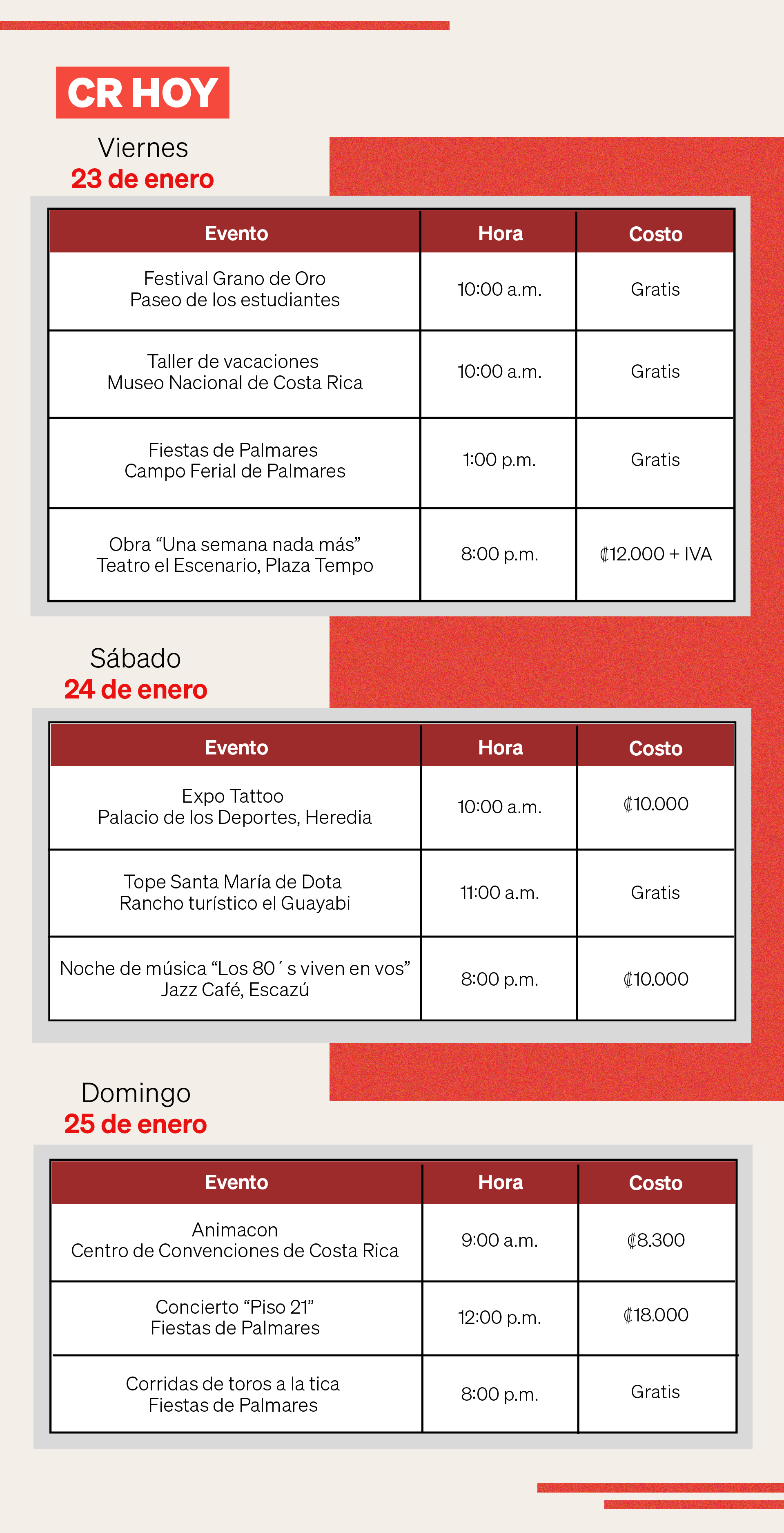 El sábado arranca a las 10:00 a.m. con la convención de tatuajes pionera del país, que celebra 11 años de arte, cultura y adrenalina con su edición especial "El Dragón". El evento se llevará a cabo en el Palacio de los Deportes, en Heredia, con entradas a partir de ₡10.000.