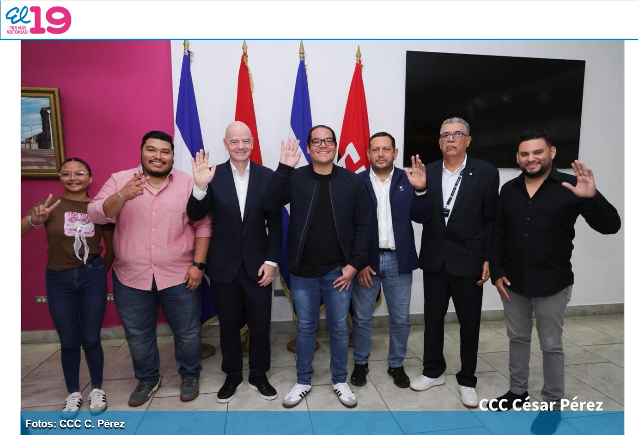 Gianni Infantino, presidente de la FIFA, fue recibido en Managua por autoridades del régimen orteguista y miembros de la federación local. Foto: El 19 Digital