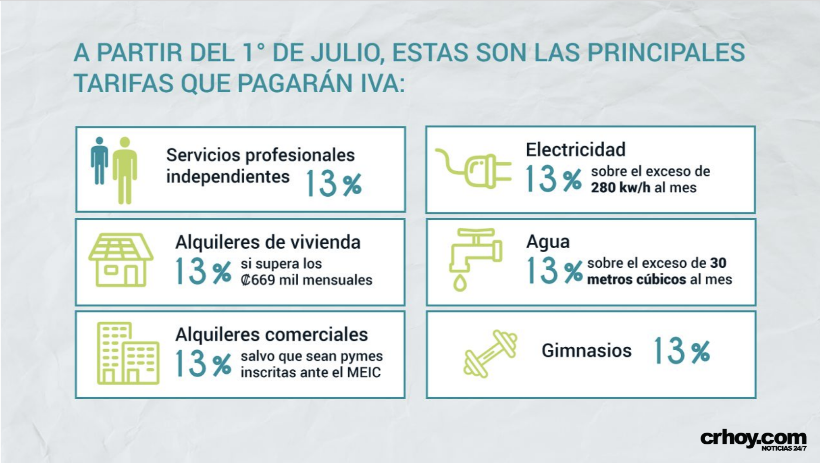 (CRHoy.com) A partir del 1° de julio, usted deberá pagar un 13% más por la mayoría de bienes y servicios que consuma, con la implementación del Impuesto de Valor Agregado (IVA).