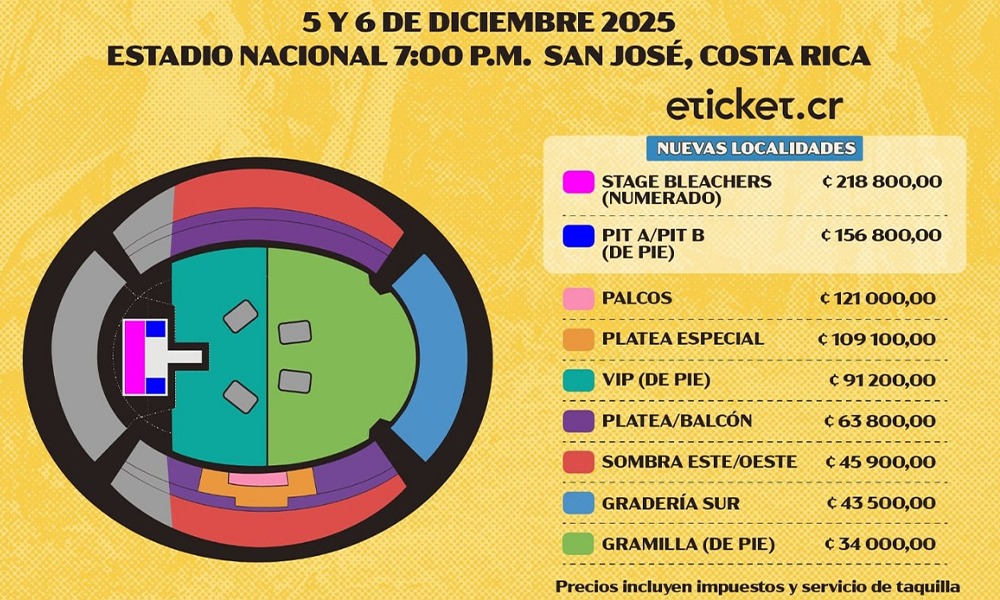 Tal como se puede ver en la imagen de cómo se iba a acomodar el concierto sin "La Casita", quienes iban a tener al puertorriqueño más de cerca es quienes pagaron ₡91.200.