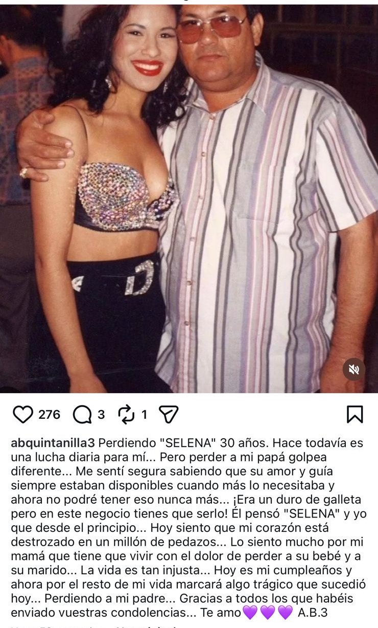 "Con el corazón entristecido les hago que mi padre falleció hoy", se puede leer en el mensaje publicado por el hermano de Selena.
