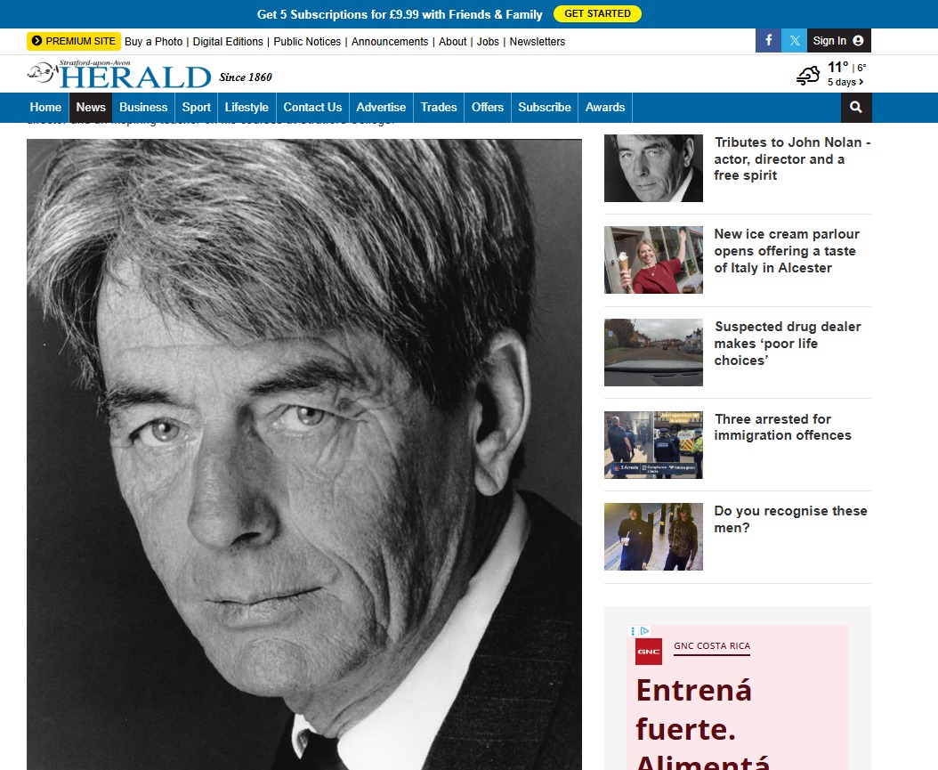 John Nolan, actor británico de extensa trayectoria y tío del reconocido cineasta Christopher Nolan, falleció este sábado a la edad de 87 años. La noticia fue confirmada inicialmente por el Stratford-Upon-Avon Herald, ciudad británica ubicada al sureste de Birmingham.