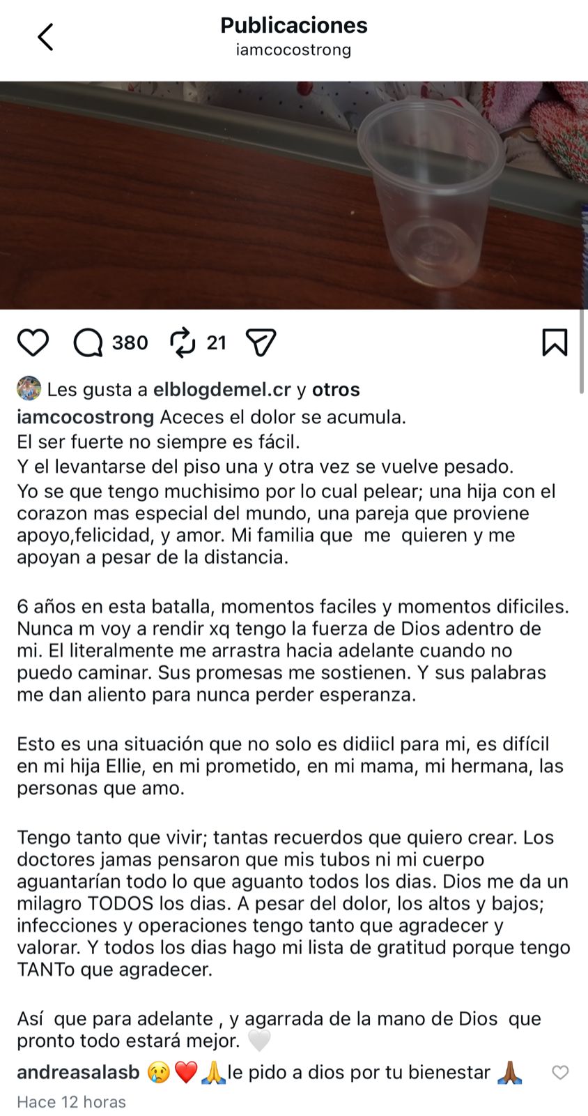 La joven relató que los médicos nunca creyeron que su cuerpo pudiera soportar los tratamientos durante tantos días; aun así, sostiene que Dios le concede un milagro cada día, pese al dolor, las infecciones y las operaciones que ha debido enfrentar.