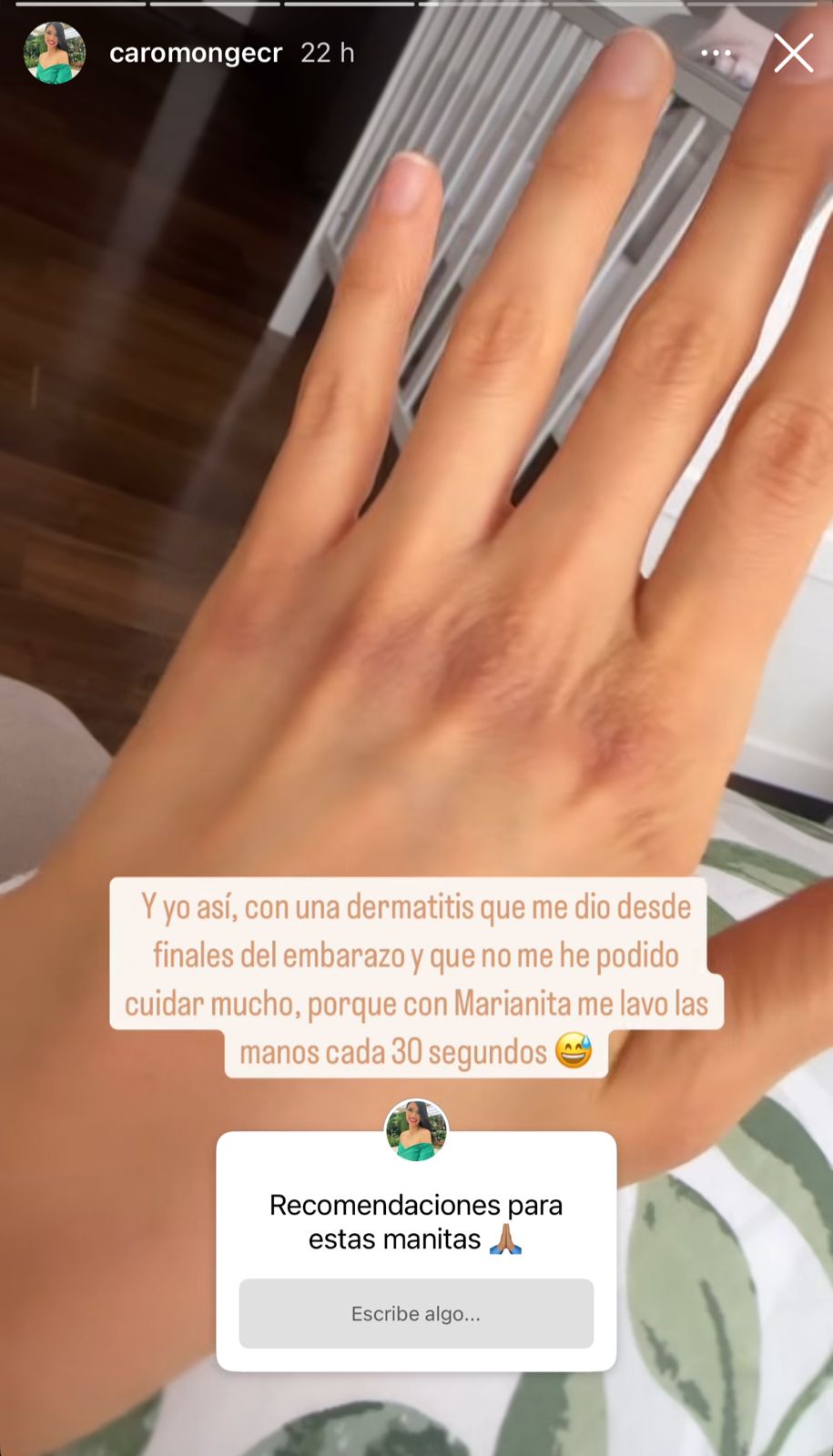 La periodista también habilitó una caja de preguntas para solicitar a sus seguidores recomendaciones que le ayuden a mejorar la condición de sus manos.