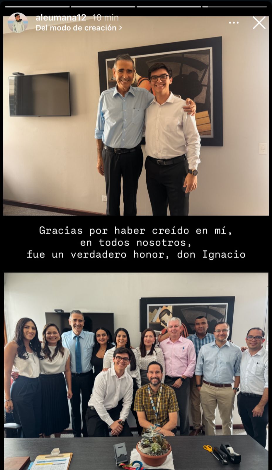 Entre quienes expresaron su agradecimiento se encuentra Alejandro Umaña, quien compartió fotografías junto al equipo de redacción del noticiero y una imagen individual con Santos. El periodista le agradeció por haber confiado en él y en el resto de los comunicadores. "Fue un verdadero honor, don Ignacio", escribió.