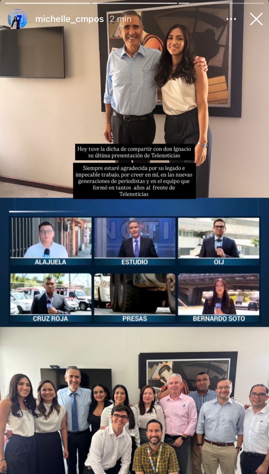 Por su parte, Michelle Campos, una de las periodistas más recientes en integrarse al canal, también realizó una publicación acompañada de fotografías del equipo y de la edición del mediodía. En su mensaje destacó que tuvo la oportunidad de compartir con Santos su última presentación en el noticiero y expresó gratitud por el respaldo brindado a las nuevas generaciones de periodistas.