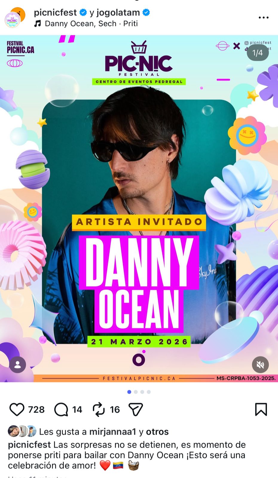 Picnic Festival tendrá a Danny Ocean como artista invitado en su edición 2026.