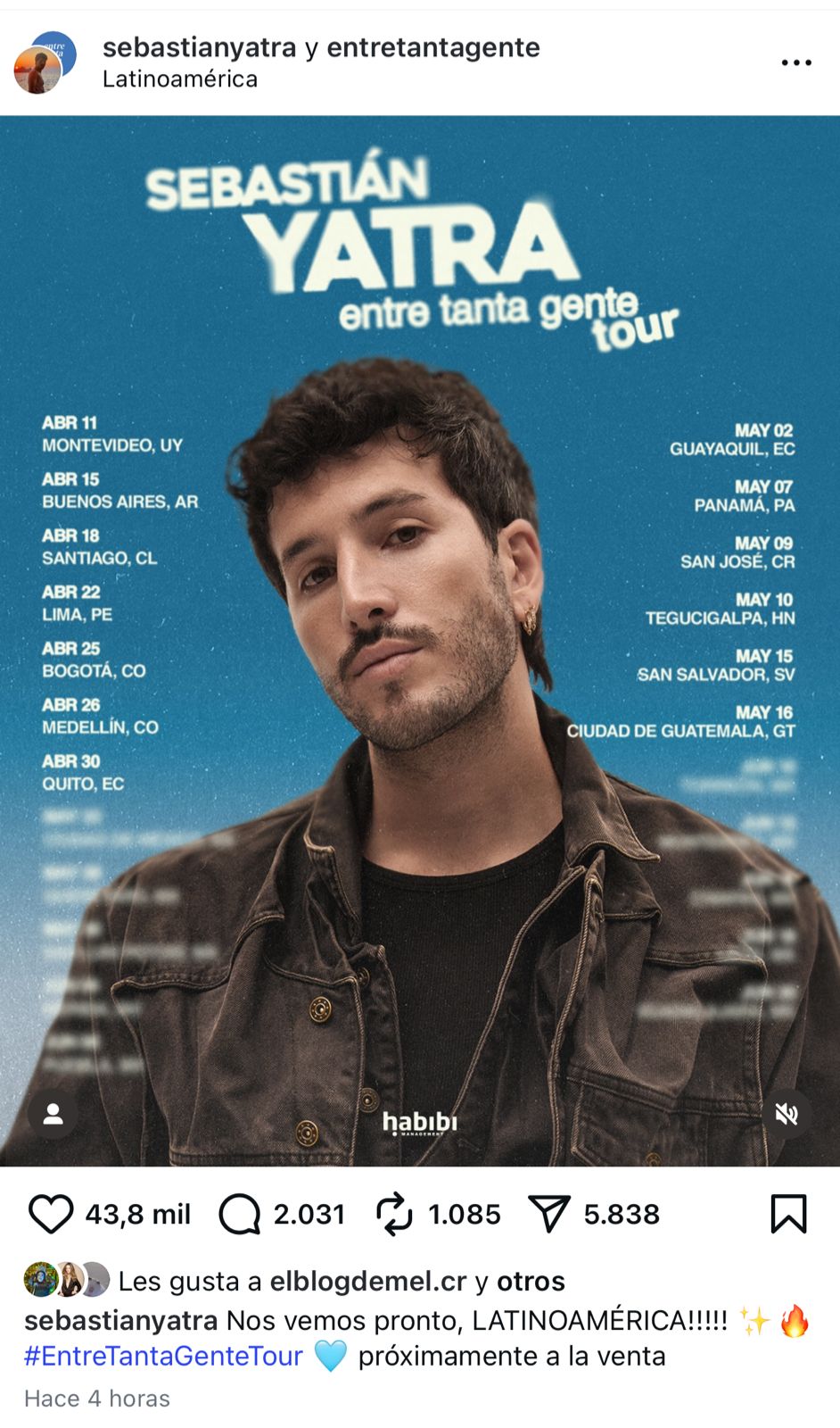 La noticia fue dada a conocer por el mismo artista a través de sus redes sociales, donde compartió las fechas de la nueva gira que realizará por Latinoamérica, llamada Entre Tanta Gente Tour. El concierto está programado para el 9 de mayo del 2026, aunque, de momento, no se conoce el recinto en el que se llevará a cabo.