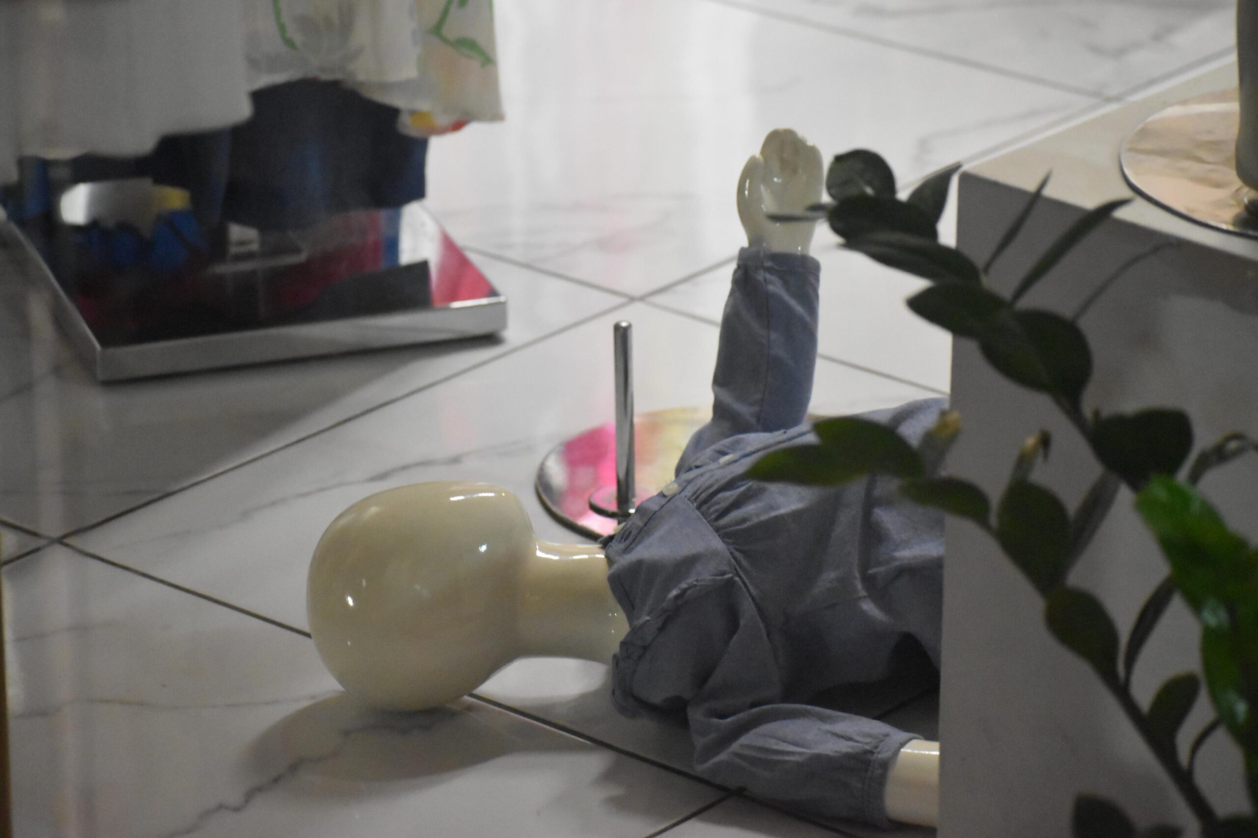 Este maniquí quedó en el suelo en una tiendad e Quepos tras el sismo del martes. CRH/Valeria Salazar