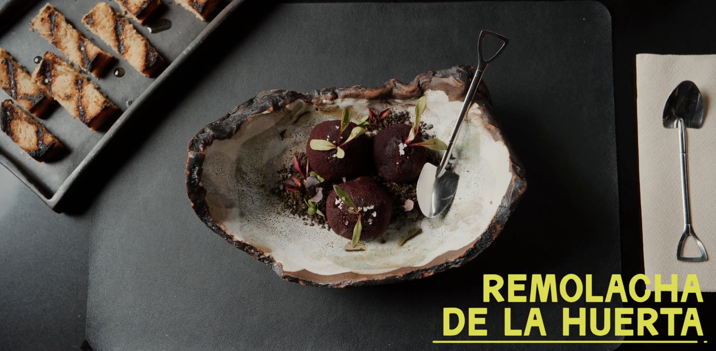 Acá la cocina se vuelve juego consciente. Tres piezas idénticas llegan al plato, pero solo dos son remolacha joven; la tercera es queso de cabra. El comensal descubre la trampa al cortar, mezclar y probar, acompañado de una falsa tierra de chocolate, remolacha, maíz y aceituna, y una crema agria que equilibra todo. Es un plato lúdico sin perder seriedad, donde técnica, producto y narrativa se cruzan con naturalidad.