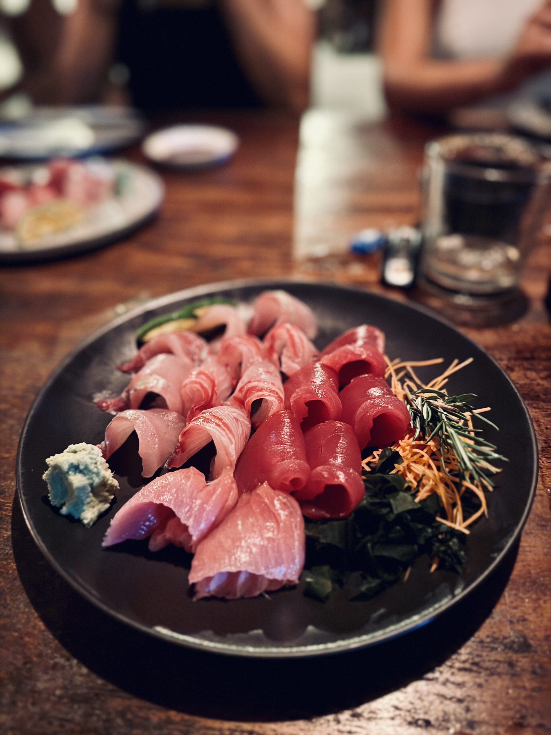 Sashimi: Ideal para empezar y disfrutar la selección de cortes de pescado según la temporada de pesca local.