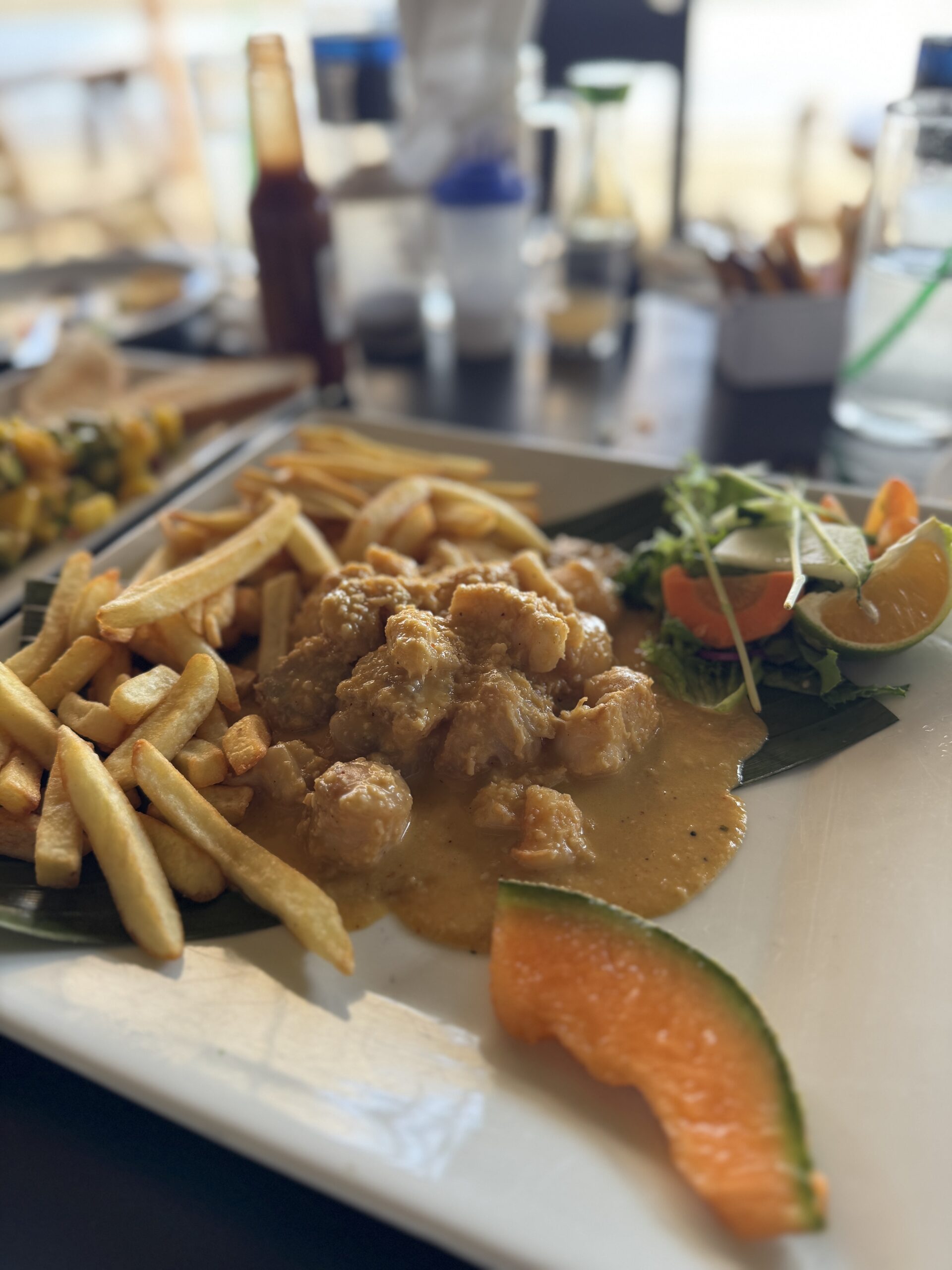 Su propuesta es pura cocina de costa, costarricense y con estilo de cantina, con mariscos frescos, casados, ceviches, patacones y pescados del día preparados con sazón local. Es el tipo de lugar donde la cocina se siente honesta, viva y conectada con su entorno.