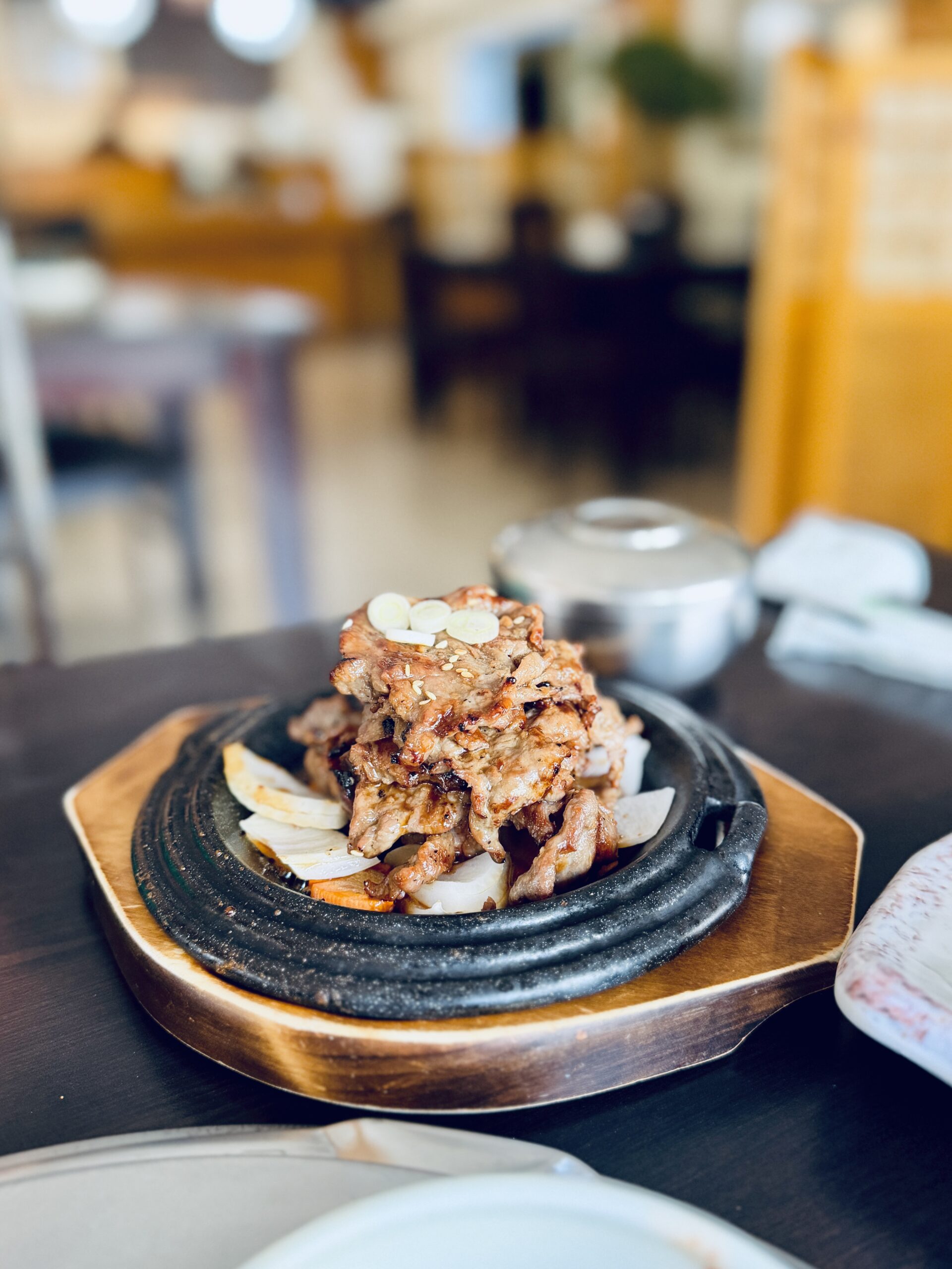 Bulgogi: Carne de res marinada con una mezcla de salsa de soja, aceite de sésamo, cebolla, ajo, jengibre, azúcar, pera asiática y pimienta negra.