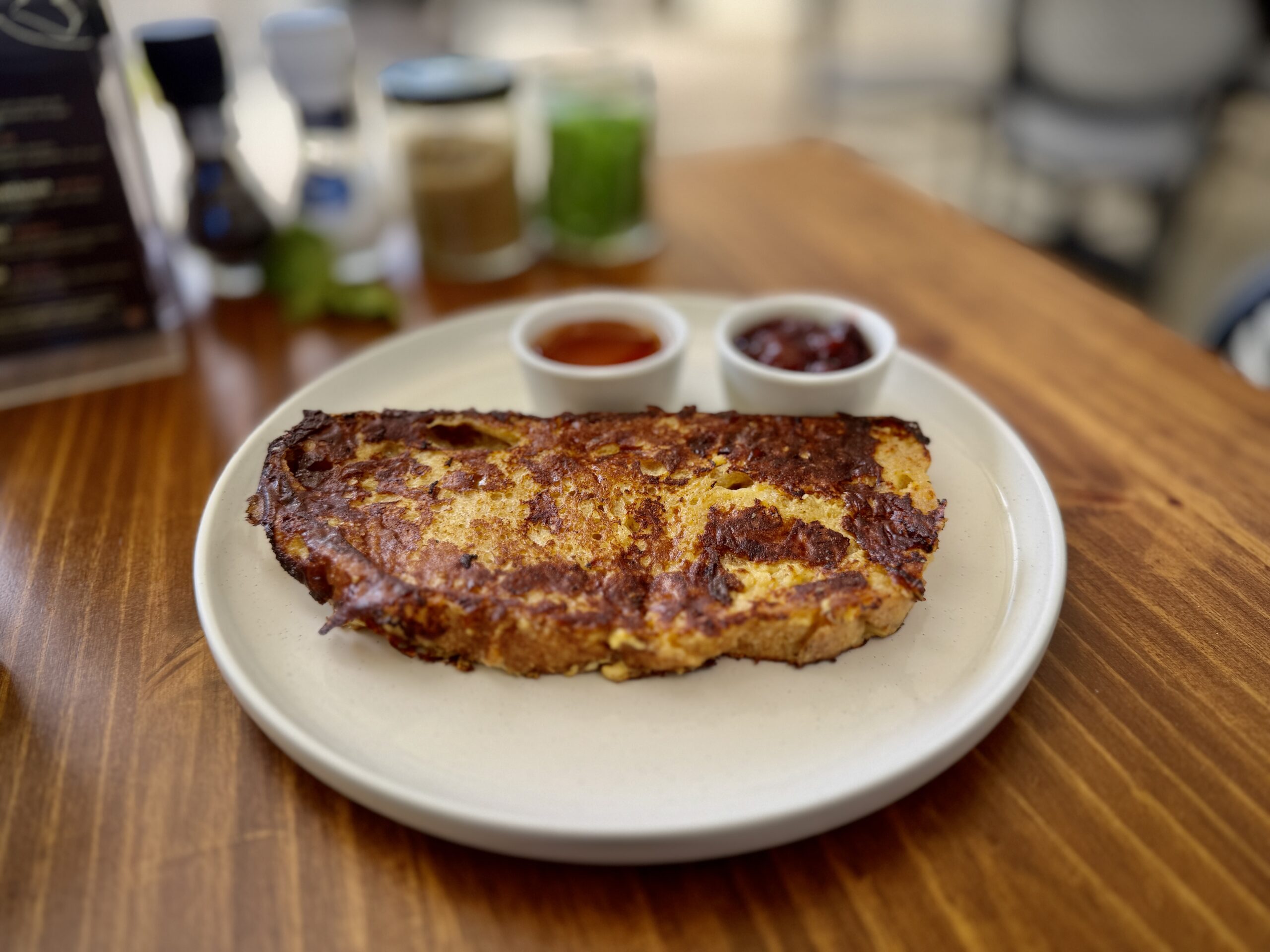 Tostada francesa: Uno de los platos más populares del restaurante. Se ve sencillo, pero la ejecución es perfecta y sabrosa.
