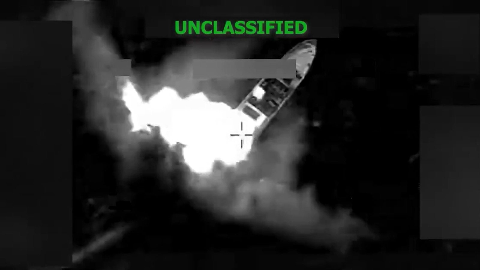 Presunta narcolancha atacada por militares de EE. UU. este 9 de febrero. Foto: Comando Sur de EE. UU.