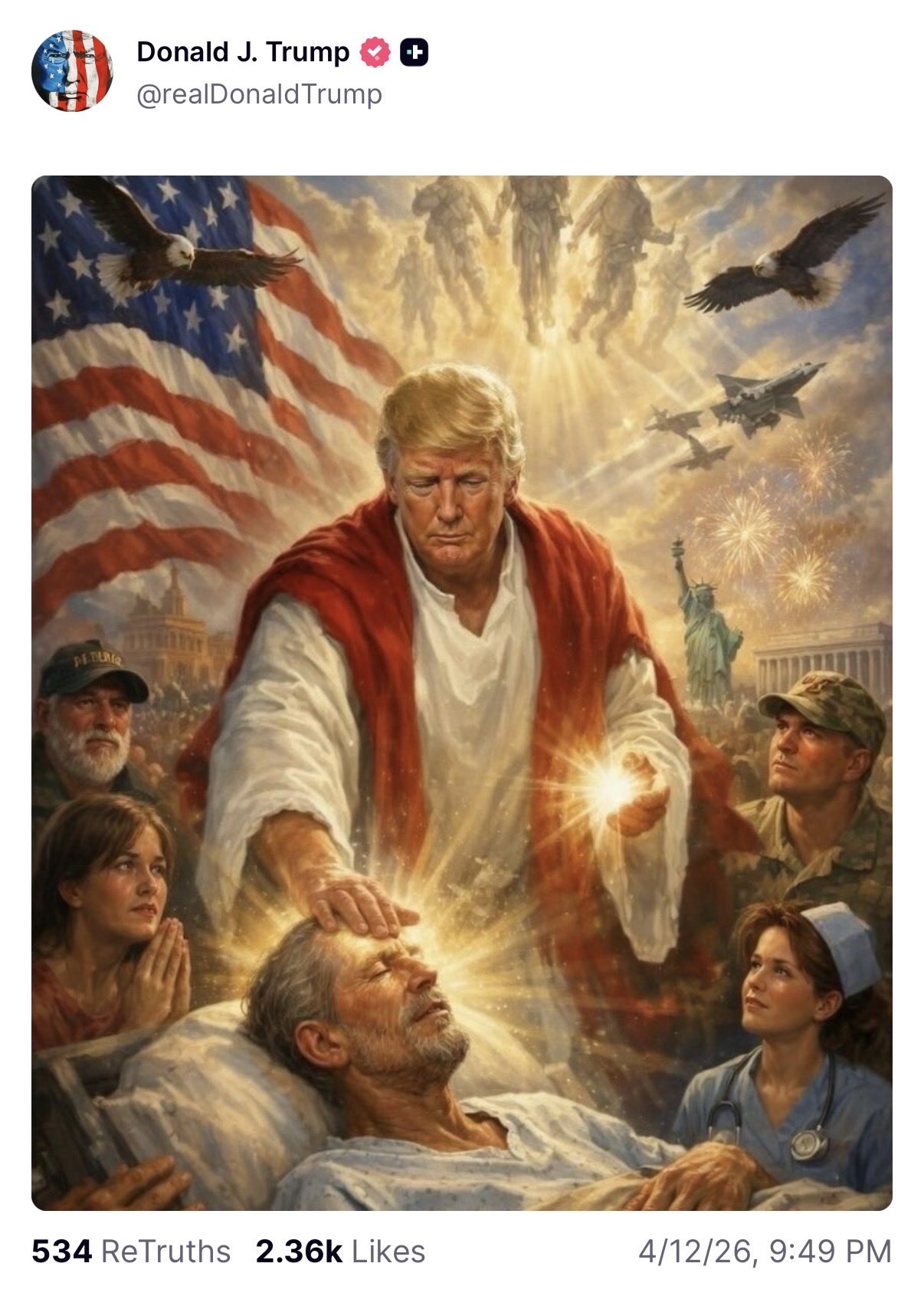 La imagen se publicó el domingo en Truth Social y se eliminó al día siguiente tras una ola de críticas de líderes religiosos, que calificaron el contenido como blasfemo. Consultado por la prensa, Trump negó que intentara compararse con Jesús.