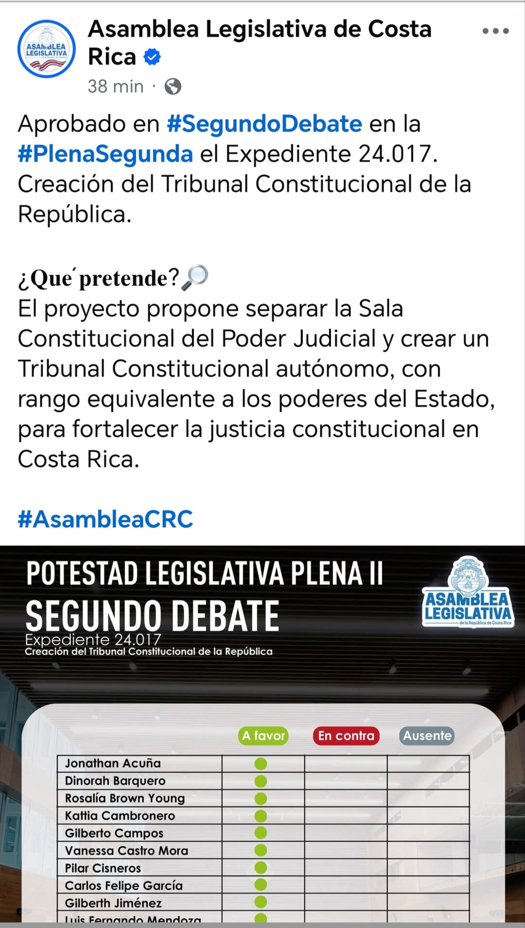 La Comisión Plena con Potestad Legislativa II aprobó, este miércoles, el expediente 25.017 y no el 24.017 sobre independizar la Sala IV del Poder Judicial, como en un inicio se informó.