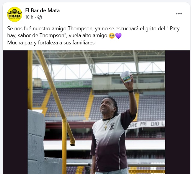 El bar de Mata, en Tibás, publicó un mensaje dedicado a Orlando Thompson, quien falleció este 16 de noviembre. Captura de pantalla/Facebook