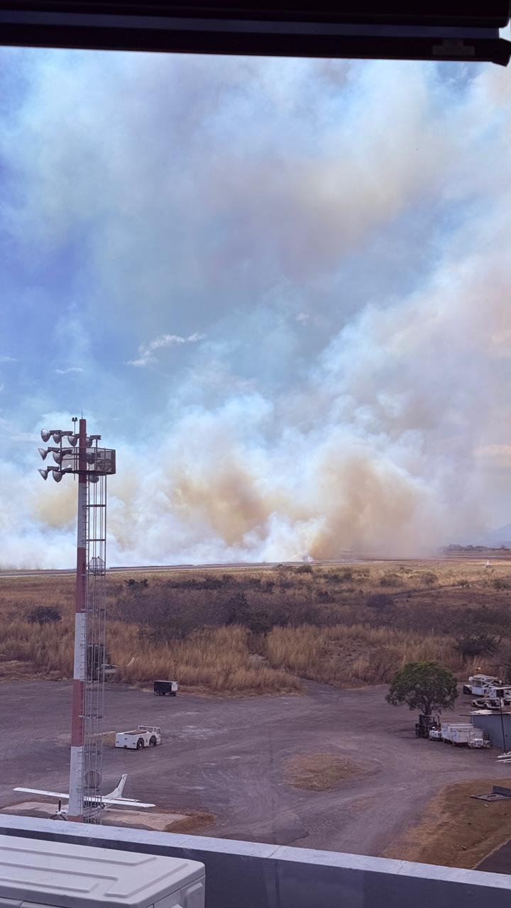 Este lunes por la tarde el Cuerpo de Bomberos recibió la información de una quema de charral en las cercanías del Aeropuerto Internacional Daniel Oduber en Liberia.