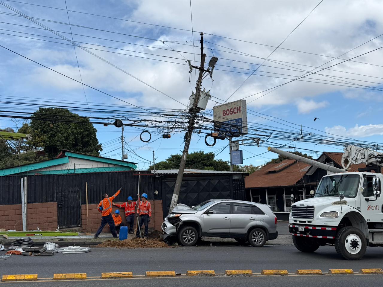 El choque de un vehículo contra un poste de luz en Desamparados provoca presas y deja sin servicio eléctrico a vecinos de ese cantón.
