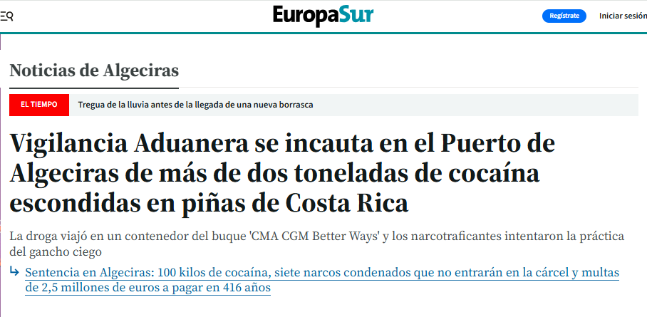 Esto se debe a que el Puerto de Algeciras funciona como uno de los principales puntos de entrada a Europa de frutas procedentes del continente americano, entre ellas la piña, producto que ha sido utilizado en reiteradas ocasiones por organizaciones criminales para el tráfico de drogas.