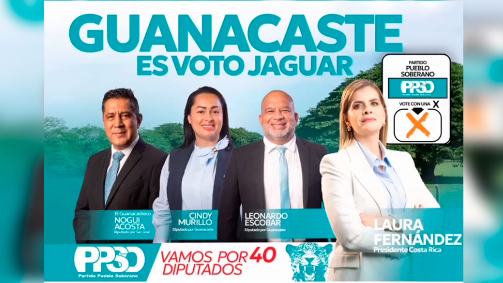 En el afiche aparece Acosta, como candidato a diputado para ese territorio, cuando lo es por San José, junto a dos aspirantes guanacastecos (Cindy Murillo y Leonardo Escobár) y la candidata presidencial Laura Fernández.