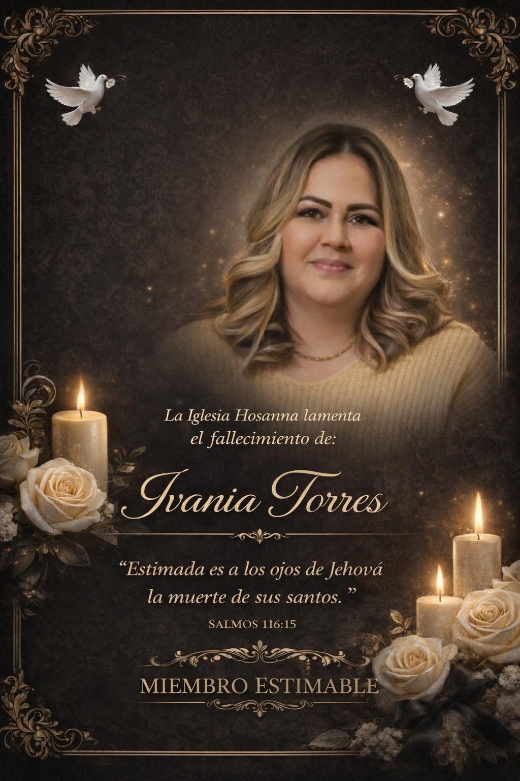 "La Iglesia Restauración Hosanna de Batán lamenta profundamente el fallecimiento de Ivania Torres, miembro estimable de nuestra congregación. Elevamos nuestras oraciones a Dios por el consuelo y la fortaleza de su familia y seres queridos, confiando en la promesa eterna de nuestro Señor (…) Acompañamos en solidaridad a su esposo Luis y a sus hijos, miembros activos de nuestra congregación, extendiéndoles nuestro apoyo y amor cristiano en este momento de dolor", señala el comunicado.