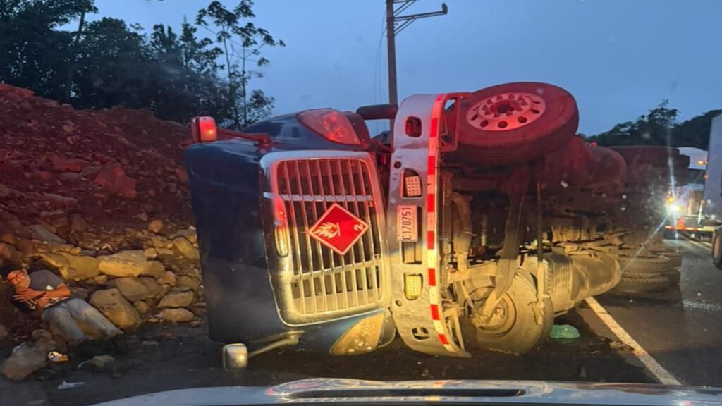 Unidades del Cuerpo de Bomberos están atendiendo desde las 6:00 p.m. de este martes el reporte del vuelco de un camión lleno con 19.000 galones de gas LP, accidente ocurrido sobre la ruta 32, por lo que el paso se mantiene cerrado.