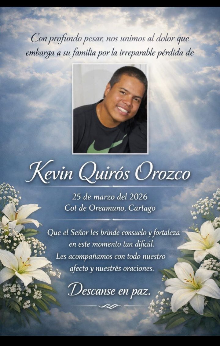 El fallecimiento de Kevin Quirós Orozco, el joven de 26 años quien murió en el incendio ocurrido en Cot de Cartago, generó múltiples muestras de pesar en redes sociales, donde familiares y allegados han expresado su dolor por la tragedia.