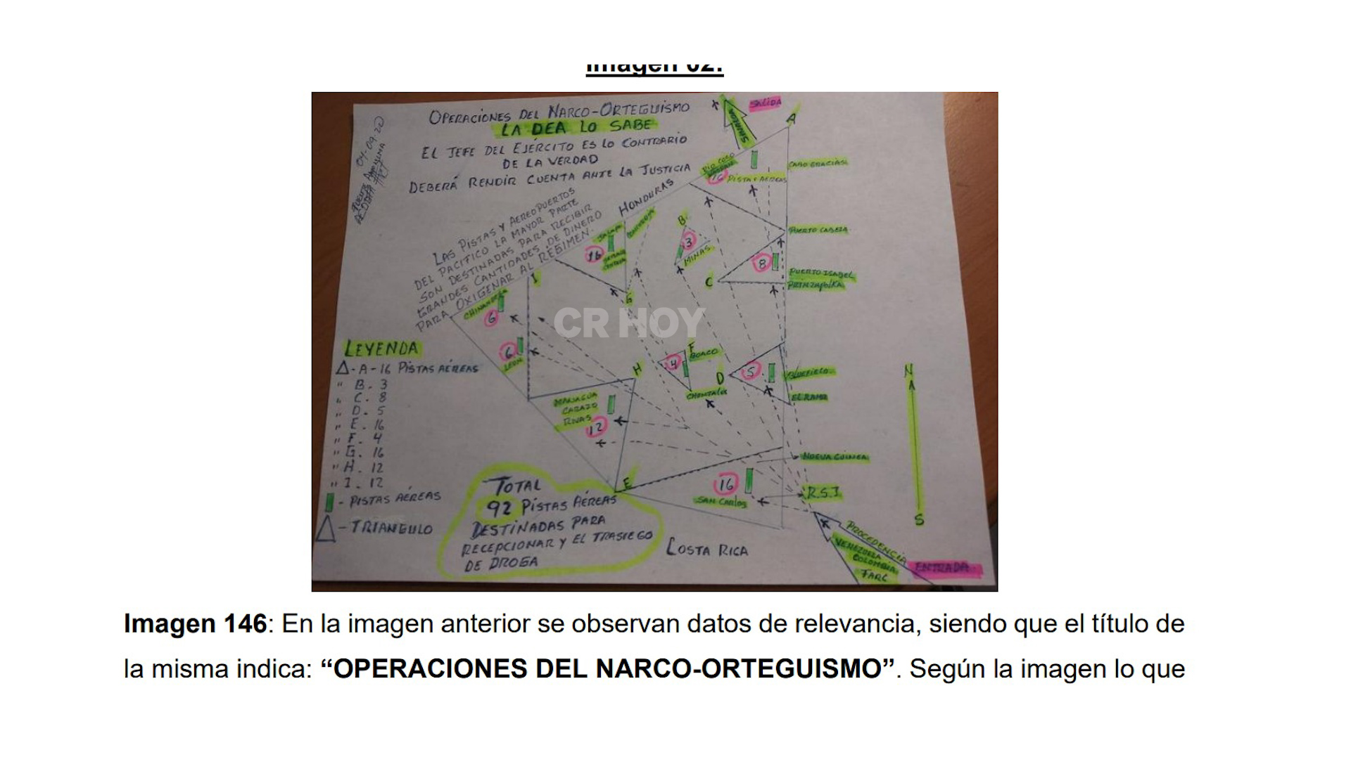 Además, se indica que existirían 92 pistas aéreas destinadas para la recepción y trasiego de droga. A partir del análisis del material, el OIJ determinó que la víctima mantenía información que vincularía a funcionarios del gobierno nicaragüense y actividades de narcotráfico.