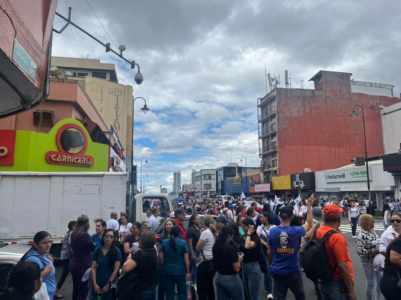 Oficiales de la Policía de Tránsito no cerraron esta mañana la vía entre el Parque Braulio Carrillo y la Iglesia de la Merced, en el centro de San José, lo que pone en riesgo la integridad de los funcionarios públicos que se manifiestan este miércoles 26 de noviembre.