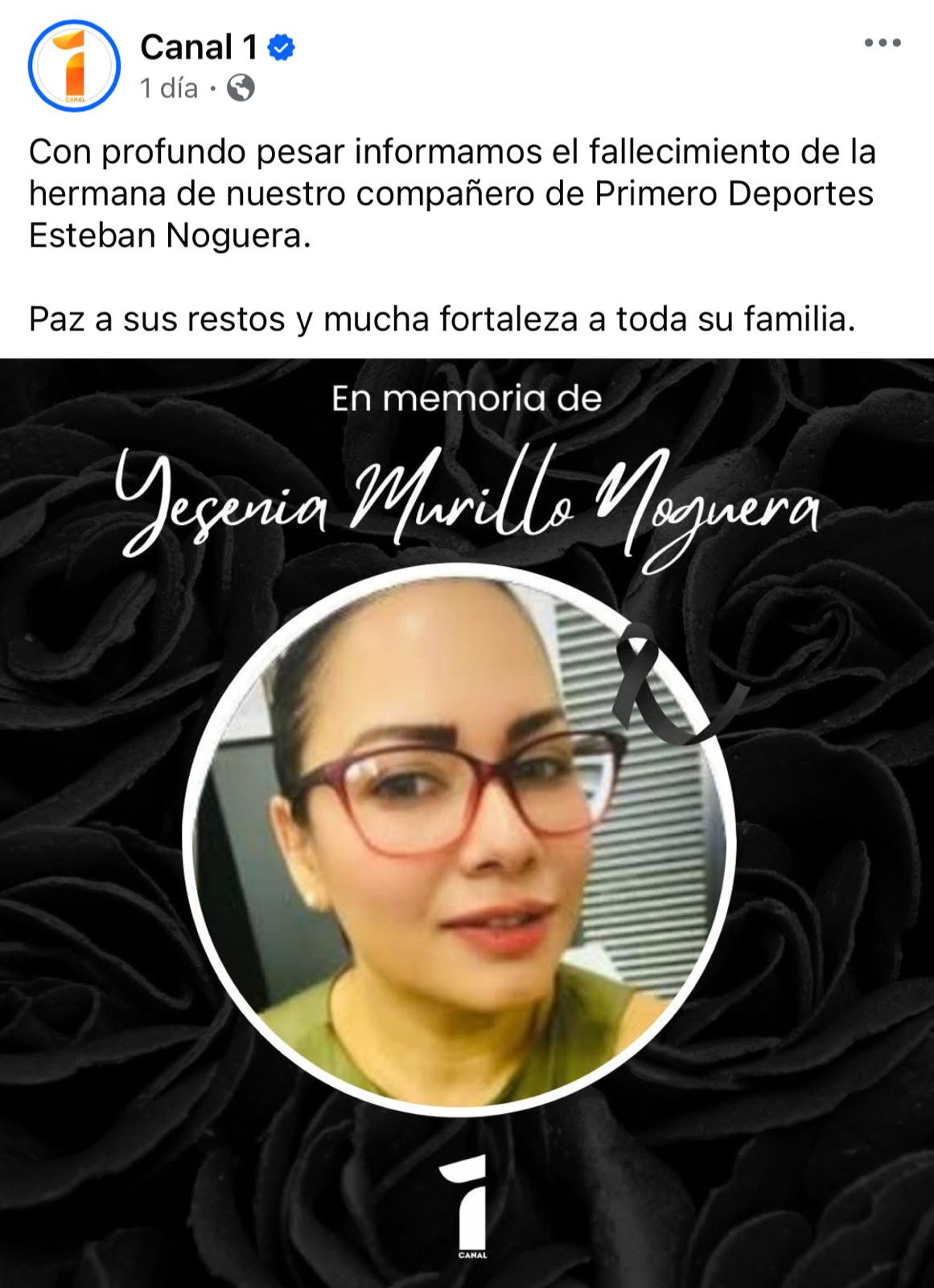 "Con profundo pesar informamos el fallecimiento de la hermana de nuestro compañero de Primero Deportes Esteban Noguera. Paz a sus restos y mucha fortaleza a toda su familia", indicó el canal.