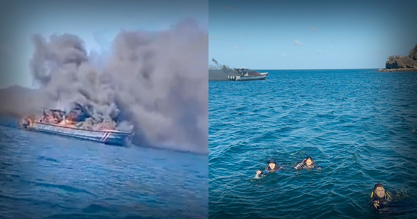 Una embarcación del Servicio Nacional de Guardacostas fue consumida por un incendio la mañana de este sábado durante un patrullaje preventivo en Bahía Cuajiniquil, en Guanacaste.