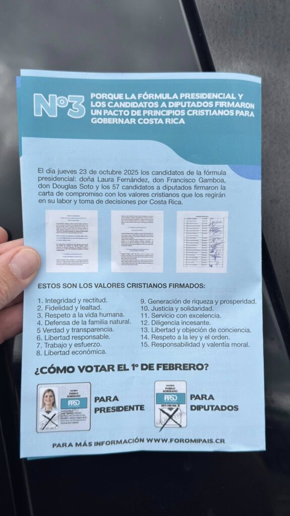 Además, en la grabación se oye que el hombre invita a otros pastores a promover la candidatura de Laura Fernández en sus iglesias, pero no a través de los sermones religiosos, sino mediante la entrega de folletos durante el culto.