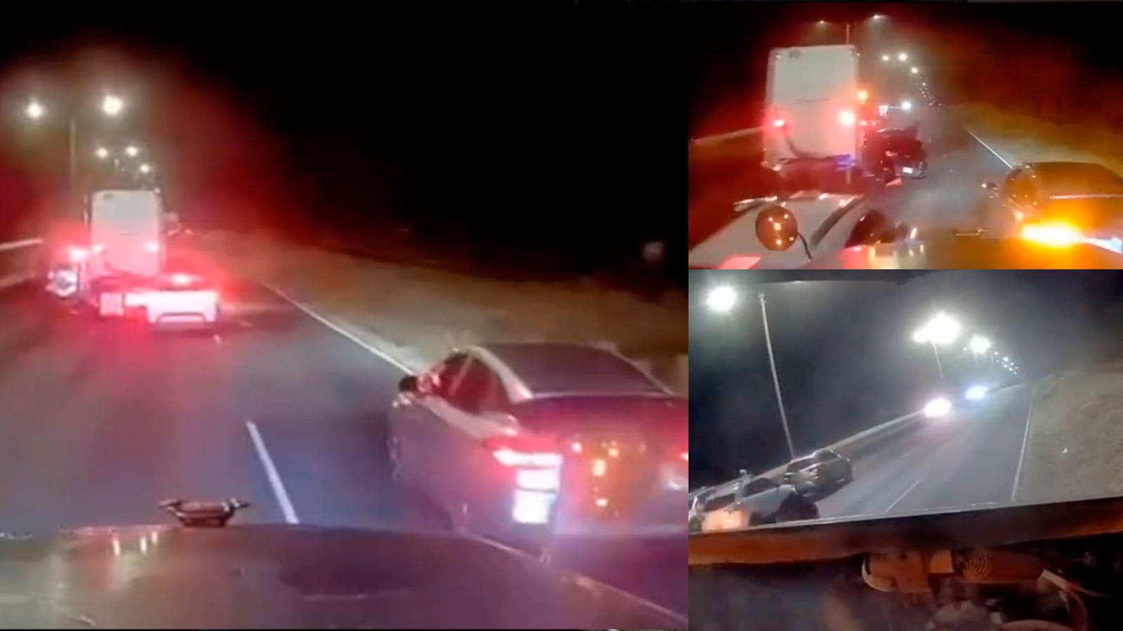 Las imágenes fueron grabadas justamente desde uno de los vehículos pesados que se vio involucrado en la colisión.
