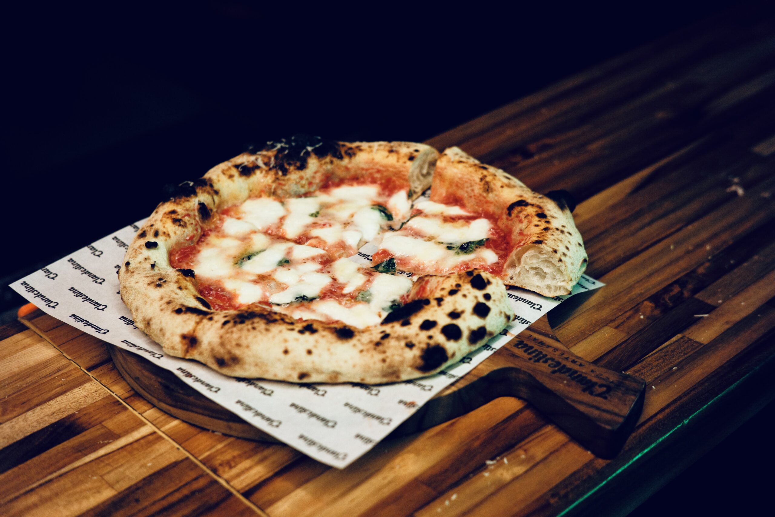 Pizza Margarita: No importa donde vayas a probar pizza, la pizza margarita es el punto de referencia para comparar con otras pizzerías y también para ver si están haciendo las cosas bien. Esta es de mis favoritas en Clandestina.