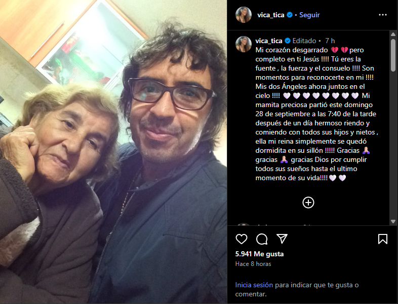 Vica Andrade revela cómo falleció su madre: “Mi corazón desgarrado”
