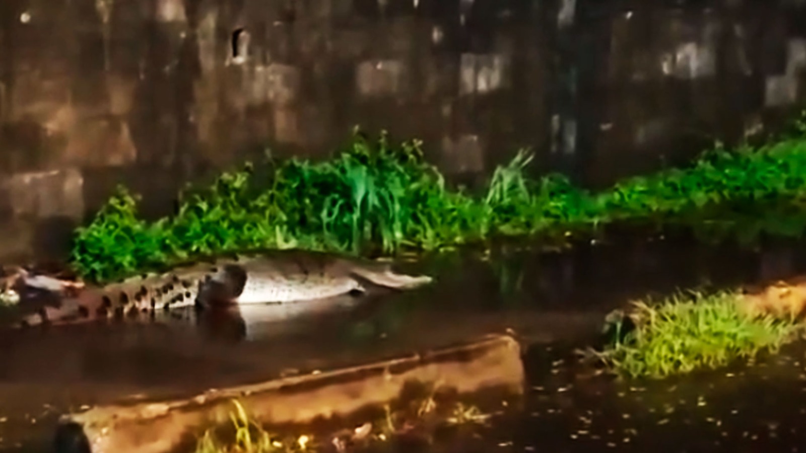 (VIDEO) Cocodrilo se paseó por calles puntarenenses tras fuertes aguaceros