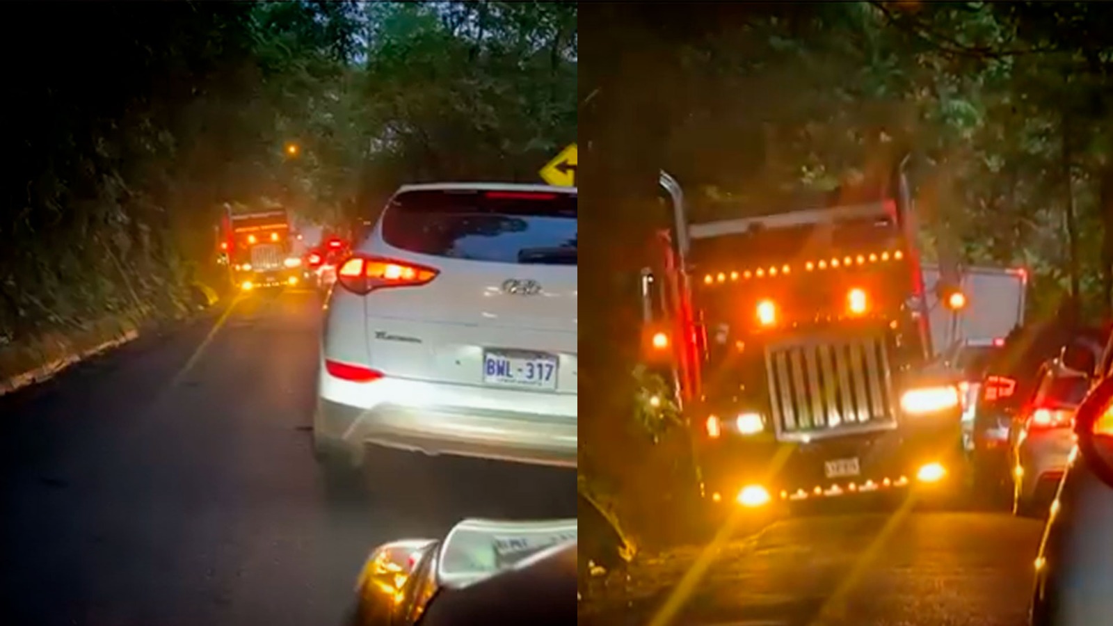 Imagen del trailero que fue captado cometiendo una imprudencia en la ruta nacional que pasa por Vara Blanca de Heredia. CRH/Captura de pantalla